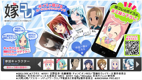 BIGLOBEは9月21日より、アニメキャラクターなどの録り下ろしボイスが聴けるカードコレクションアプリ「嫁コレ」を、iPhone向けに提供開始します。