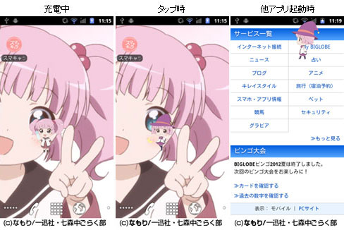 BIGLOBEは、11月21日より、デフォルメされたキャラクターが画面上を動き回るAndroid(TM)向け待ち受けアプリ「スマキャラコレクション」にて、アニメ『ゆるゆり』の“吉川ちなつ”を追加いたします。