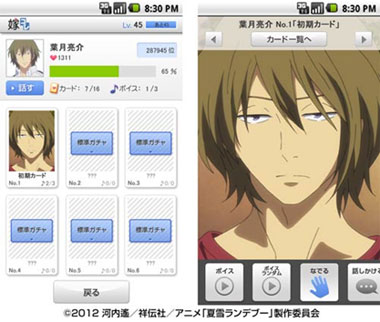 BIGLOBEは、11月22日より、アニメやゲームキャラクターの録り下ろしボイスが聴けるカードコレクションアプリ「嫁コレ」(iPhone及びAndroid(TM)向け)(注1)に、アニメ『夏雪ランデブー』より“葉月亮介”を追加します。今回の追加によって、「嫁コレ」アプリで遊べるキャラクターは、59作品、152キャラクターになります。