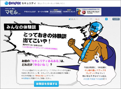 本機能の追加にあわせて、BIGLOBEのセキュリティソフト「セキュリティセット・プレミアム」を合計100年分プレゼントするTwitterキャンペーンや、体験談の投稿者に『セキュリティ戦士 マモルくん』のオリジナルグッズをプレゼントするキャンペーンも開始いたします。